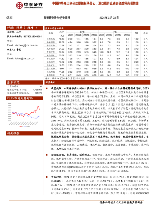 【中泰证券】【20240323】20240323-中泰证券-煤炭行业周报:中国神华高比例分红提振板块信心,港口煤价止跌企稳缓释悲观情绪-27页