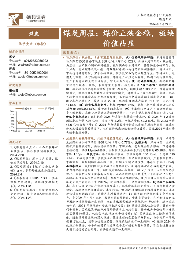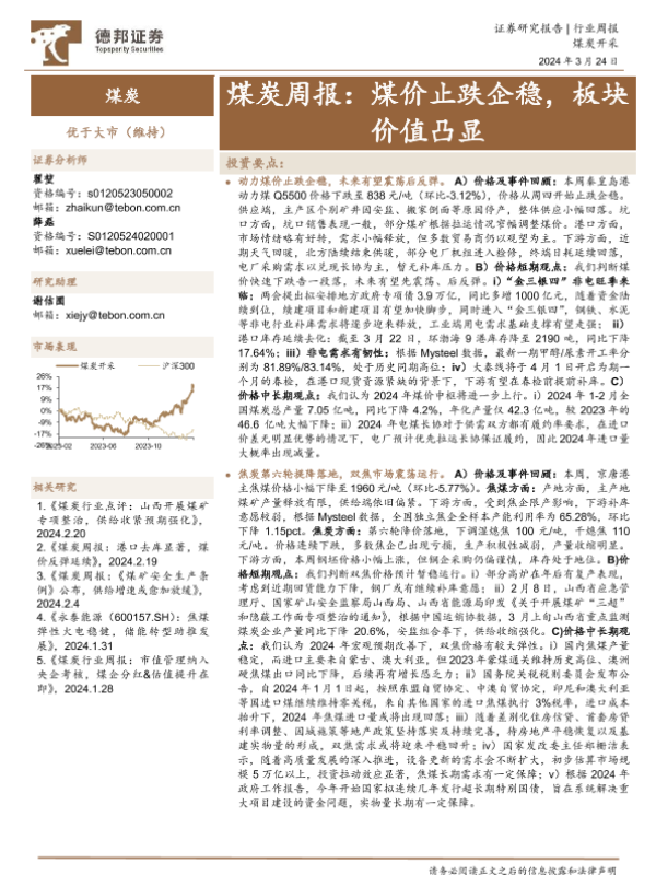 【德邦证券】【20240324】20240324-德邦证券-煤炭周报:煤价止跌企稳,板块价值凸显-16页