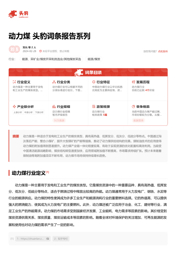 【头豹研究院】【20240228】动力煤 头豹词条报告系列-19页
