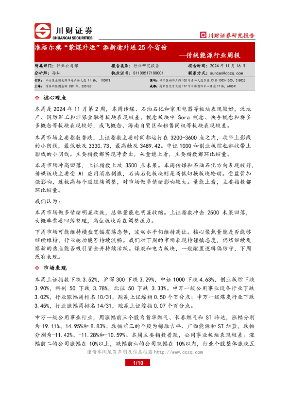 【川财证券】【20241116】20241116-川财证券-传统能源行业周报:准格尔旗“蒙煤外运”添新途外送25个省份-10页