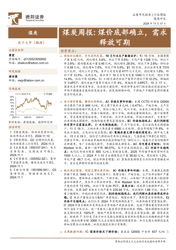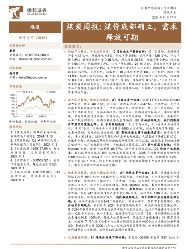 【德邦证券】【20241117】煤炭周报:煤价底部确立,需求释放可期-16页