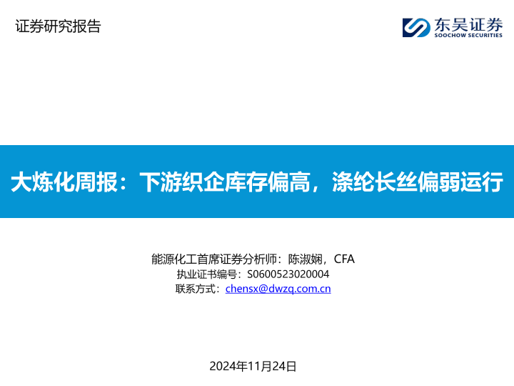 【东吴证券】【20241124】大炼化周报:下游织企库存偏高,涤纶长丝偏弱运行-34页