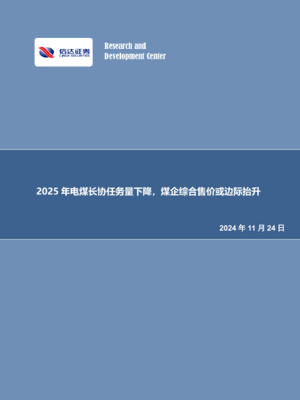 【信达证券】【20241124】2025年电煤长协任务量下降,煤企综合售价或边际抬升-31页