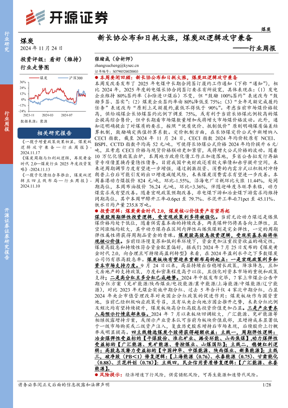 【开源证券】【20241124】煤炭行业周报:新长协公布和日耗大涨,煤炭双逻辑攻守兼备-28页