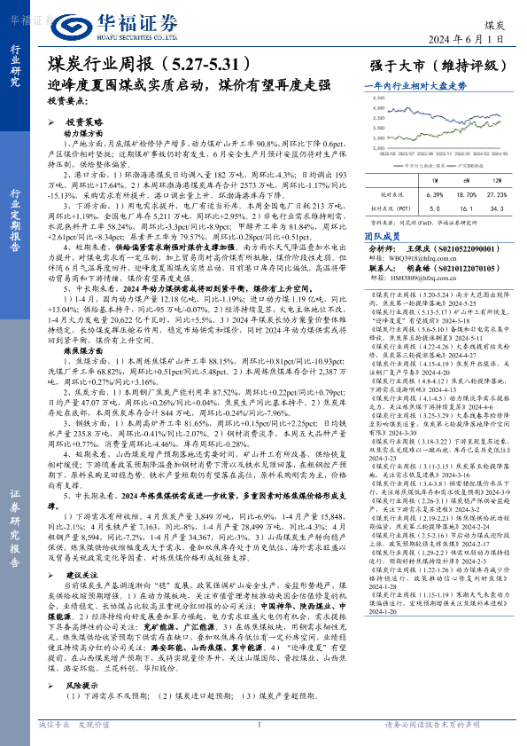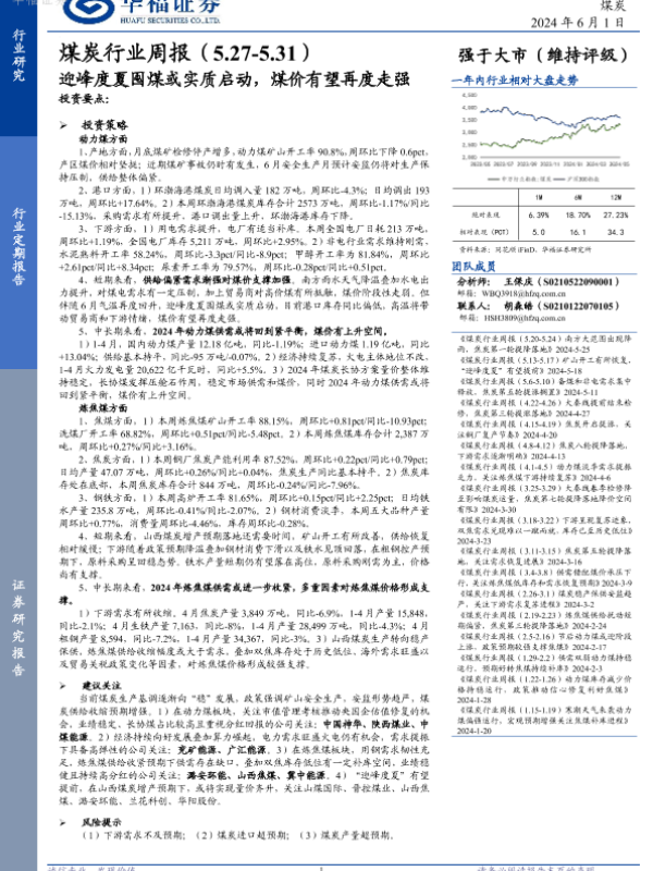 【华福证券】【20240601】20240601-华福证券-煤炭行业周报:迎峰度夏囤煤或实质启动,煤价有望再度走强-16页