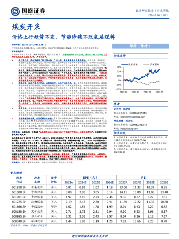 【国盛证券】【20240602】20240602-国盛证券-煤炭开采行业周报:价格上行趋势不变,节能降碳不改底层逻辑-16页