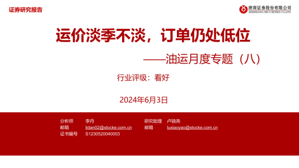 【浙商证券】【20240603】20240603-浙商证券-油运月度专题(八):运价淡季不淡,订单仍处低位-32页