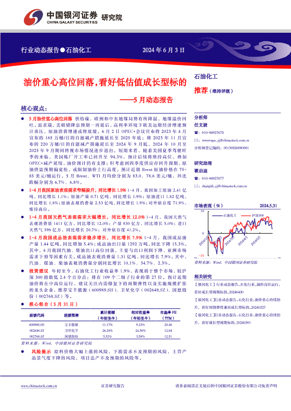 【银河证券】【20240603】20240603-中国银河-石油化工5月动态报告:油价重心高位回落,看好低估值成长型标的-21页