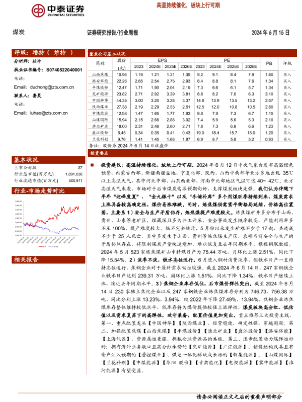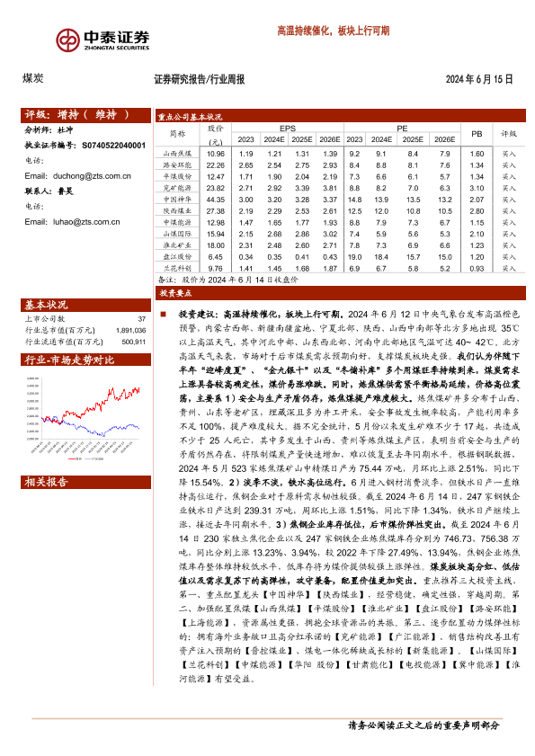 【中泰证券】【20240615】20240615-中泰证券-煤炭行业周报:高温持续催化,板块上行可期-28页