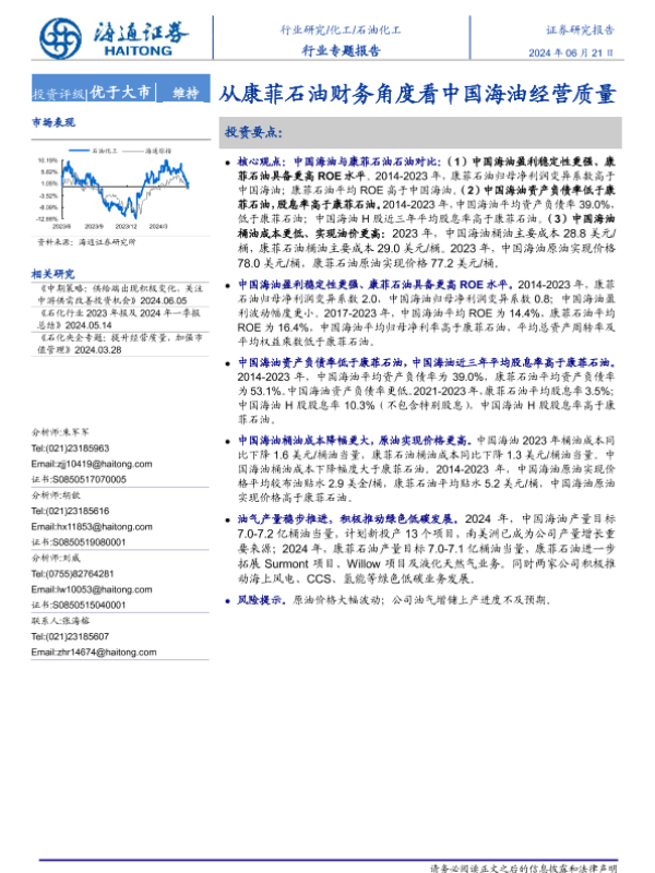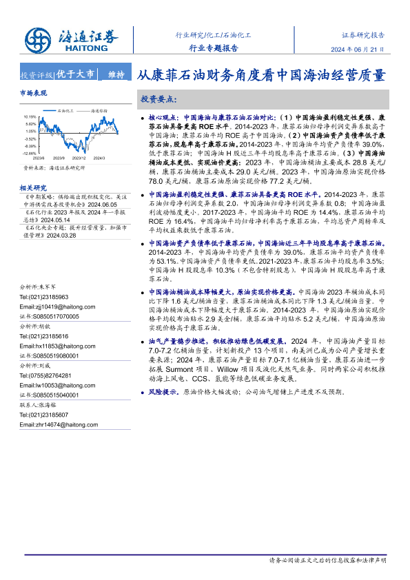 【海通证券】【20240621】20240621-海通证券-石油化工行业专题报告:从康菲石油财务角度看中国海油经营质量-15页