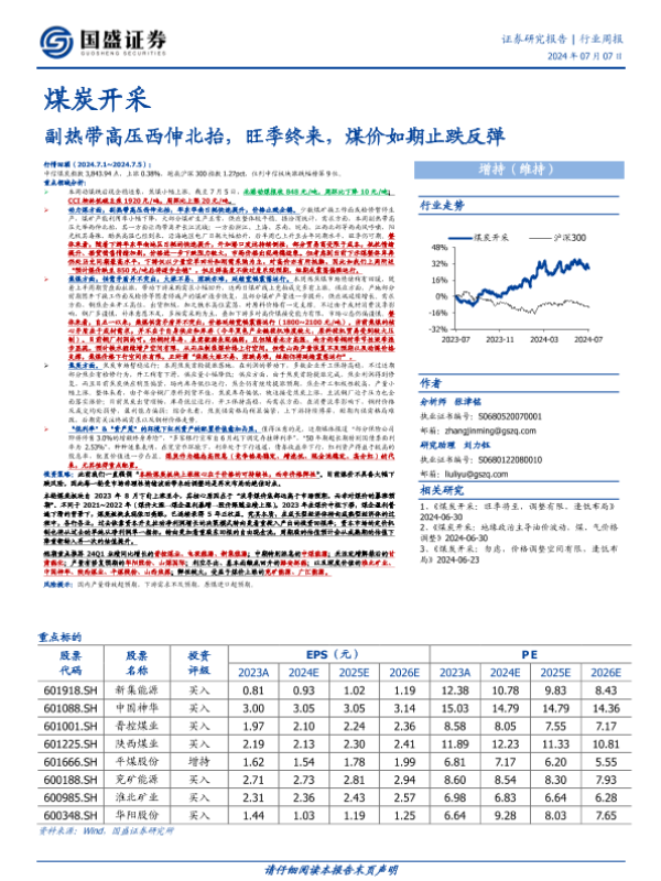 【国盛证券】【20240707】20240707-国盛证券-煤炭开采行业周报:副热带高压西伸北抬,旺季终来,煤价如期止跌反弹-18页