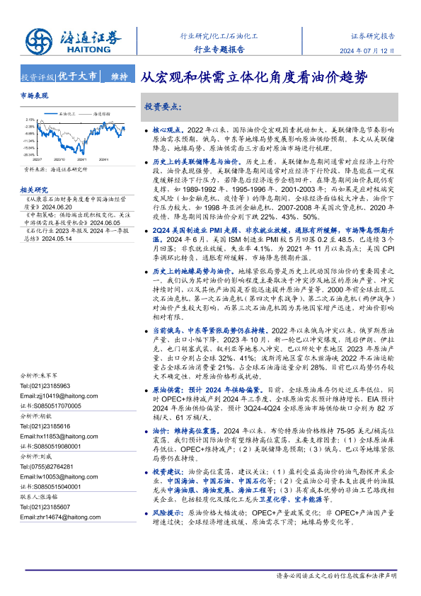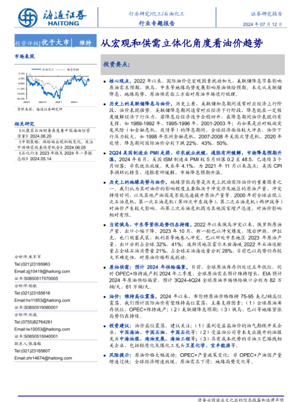 【海通证券】【20240712】20240712-海通证券-石油化工行业专题报告:从宏观和供需立体化角度看油价趋势-19页