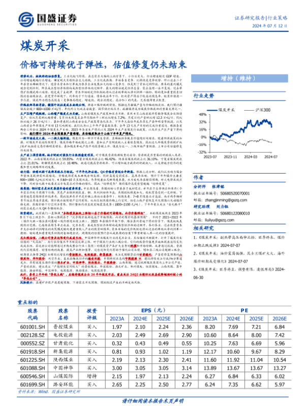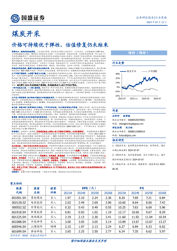 【国盛证券】【20240712】20240712-国盛证券-煤炭开采行业策略:价格可持续优于弹性,估值修复仍未结束-40页