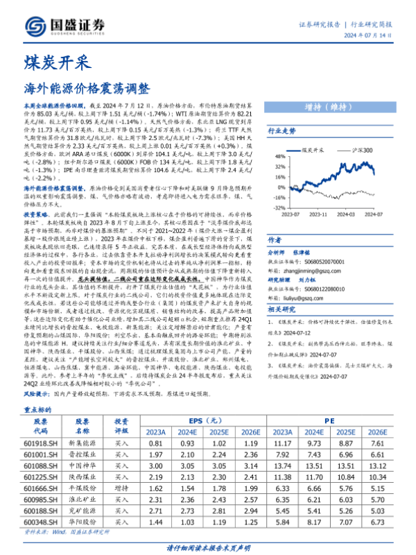 【国盛证券】【20240714】煤炭开采:海外能源价格震荡调整-11页