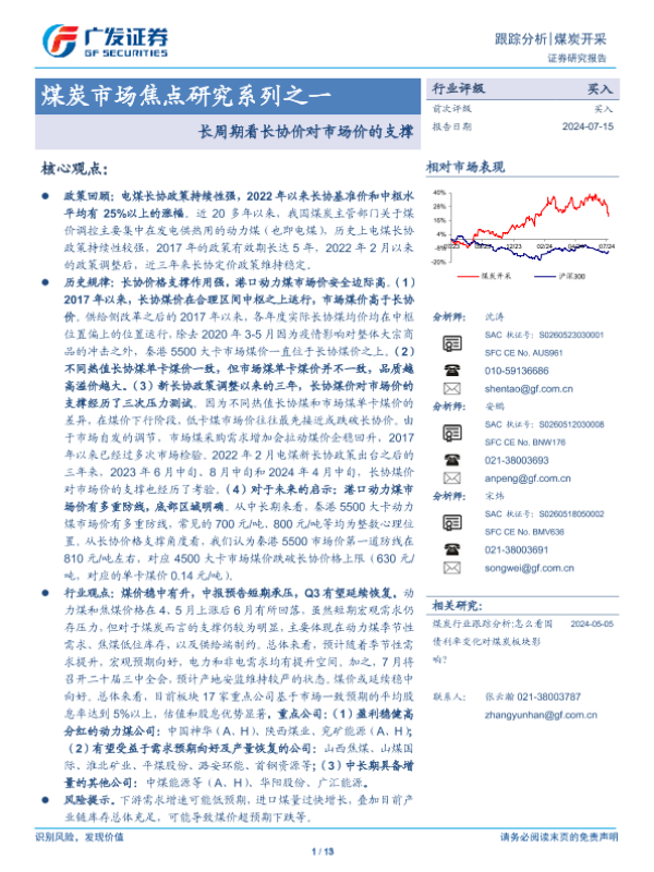 【广发证券】【20240715】20240715-广发证券-煤炭市场焦点研究系列之一:长周期看长协价对市场价的支撑-13页