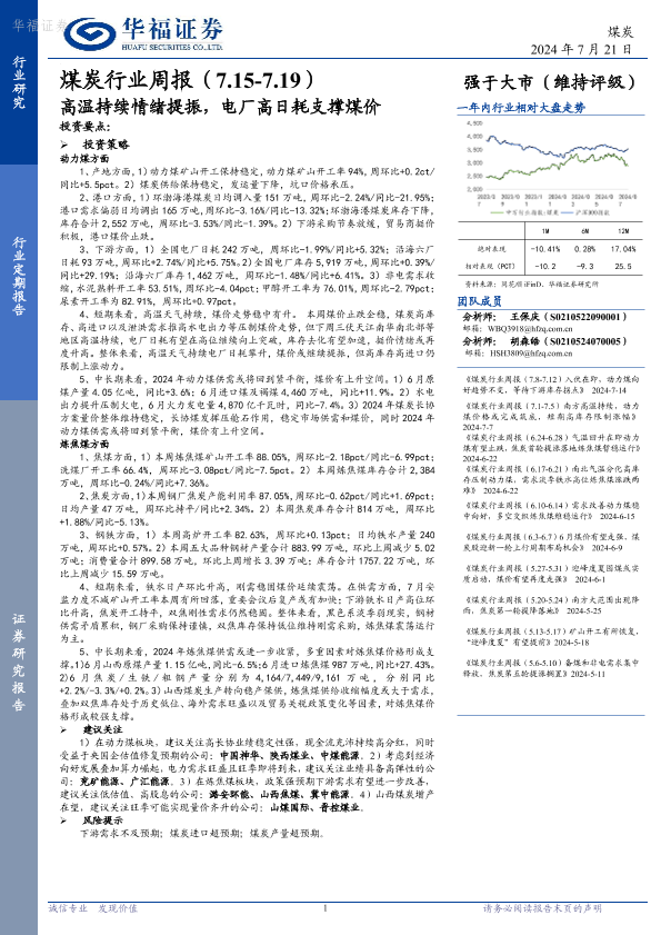 【华福证券】【20240721】20240721-华福证券-煤炭行业周报:高温持续情绪提振,电厂高日耗支撑煤价-15页