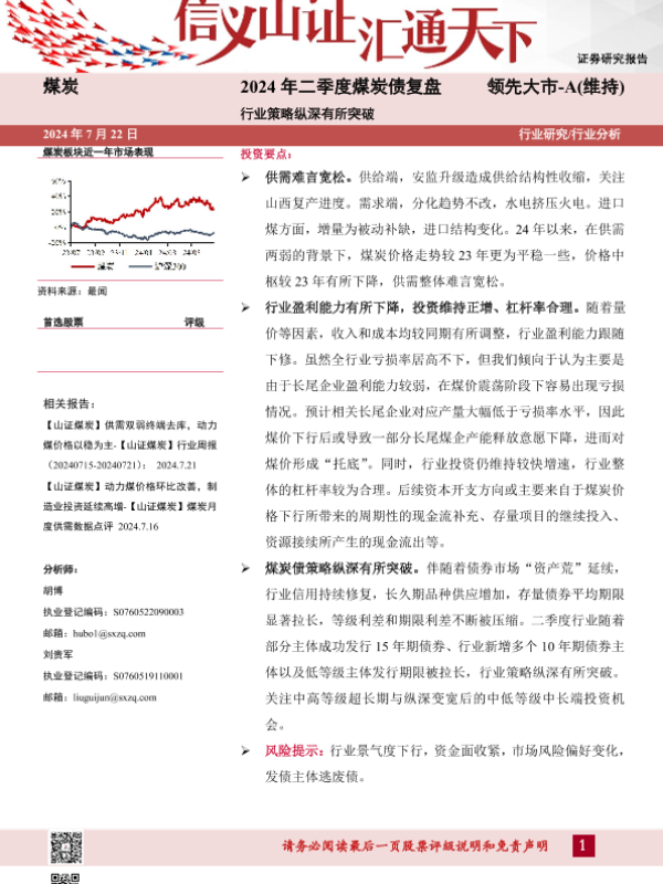 【山西证券】【20240722】2024年二季度煤炭债复盘:行业策略纵深有所突破-22页