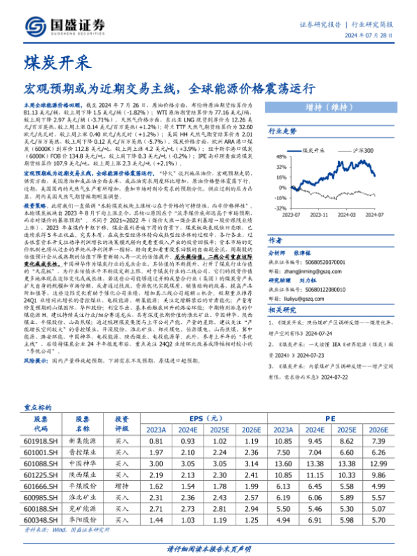 【国盛证券】【20240728】20240728-国盛证券-煤炭开采行业研究简报:宏观预期或为近期交易主线,全球能源价格震荡运行-12页