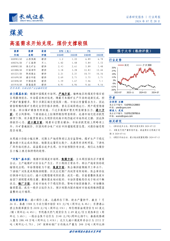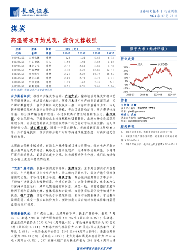 【长城证券】【20240728】20240728-长城证券-煤炭行业周报:高温需求开始兑现,煤价支撑较强-19页
