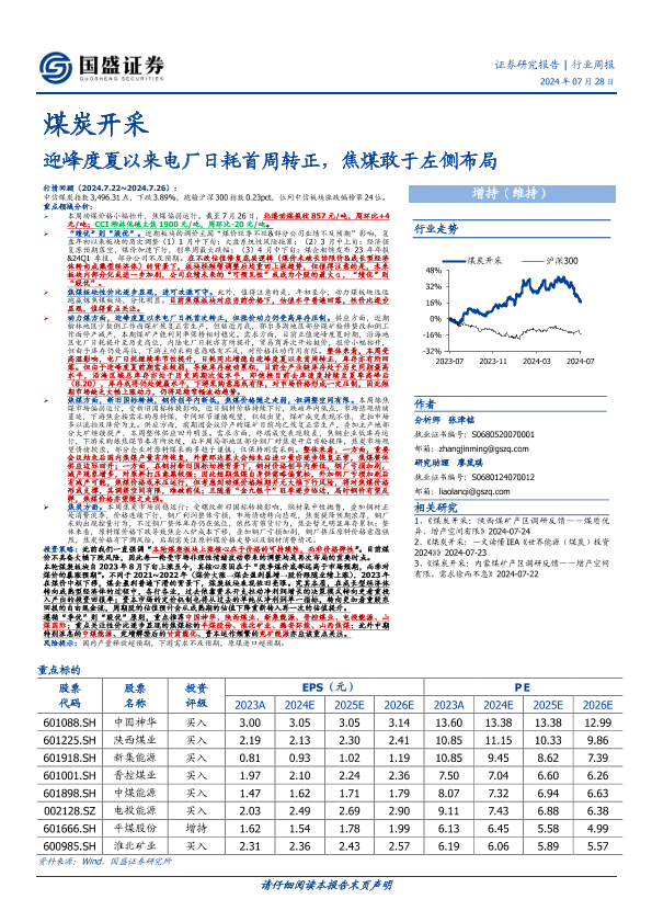【国盛证券】【20240728】20240728-国盛证券-煤炭开采行业周报:迎峰度夏以来电厂日耗首周转正,焦煤敢于左侧布局-17页
