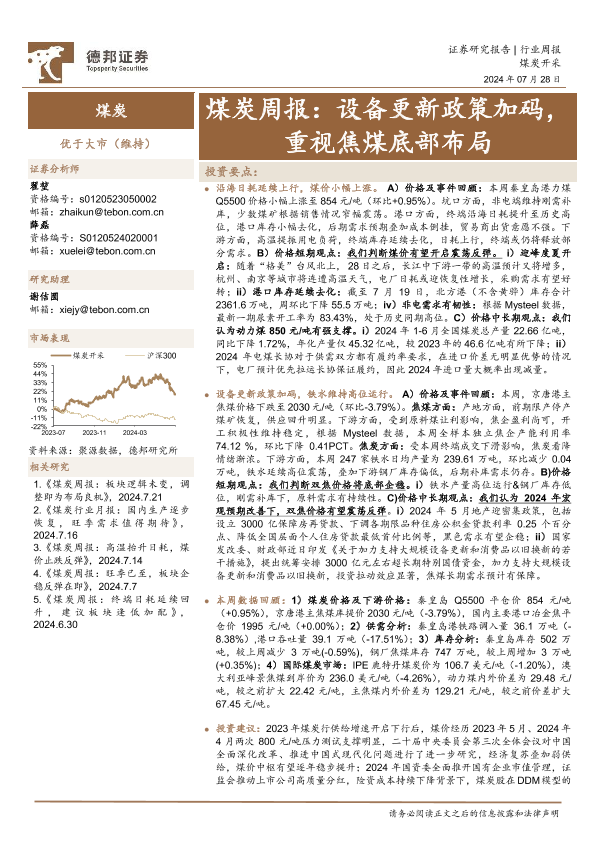 【德邦证券】【20240728】煤炭周报:设备更新政策加码,重视焦煤底部布局-17页