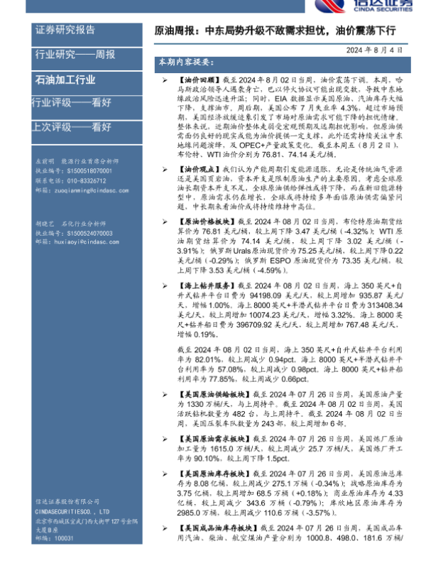 【信达证券】【20240804】原油周报:中东局势升级不敌需求担忧,油价震荡下行-28页