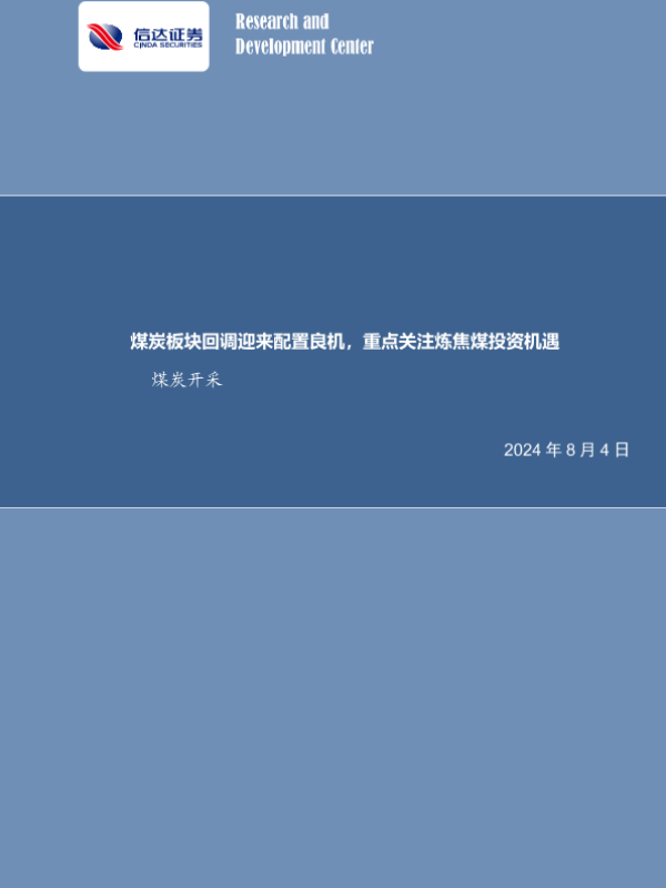 【信达证券】【20240804】20240804-信达证券-煤炭开采行业周报:煤炭板块回调迎来配置良机,重点关注炼焦煤投资机遇-33页