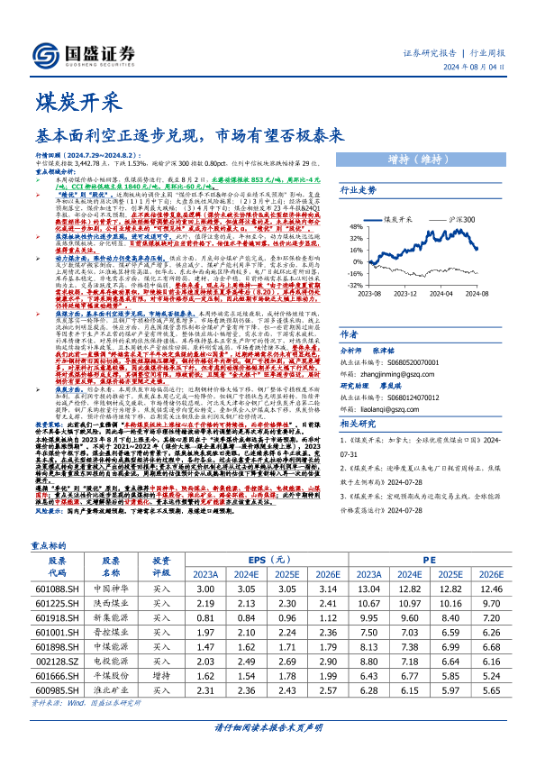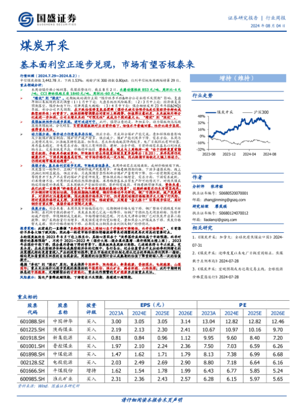 【国盛证券】【20240804】20240804-国盛证券-煤炭开采行业周报:基本面利空正逐步兑现,市场有望否极泰来-19页