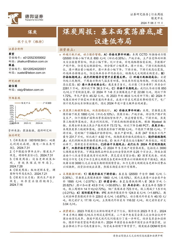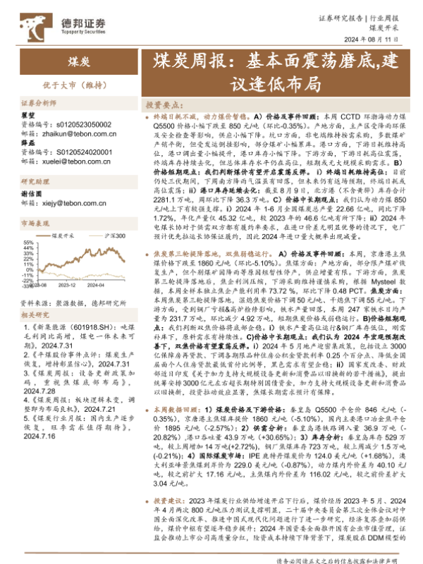 【德邦证券】【20240811】20240811-德邦证券-煤炭行业周报:基本面震荡磨底,建议逢低布局-17页