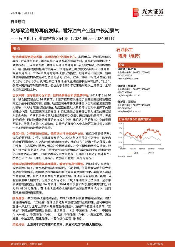 【光大证券】【20240811】20240811-光大证券-石油化工行业周报第364期:地缘政治局势再度发酵,看好油气产业链中长期景气-21页