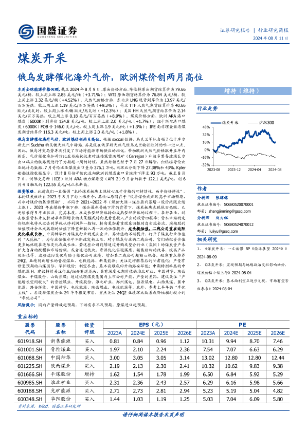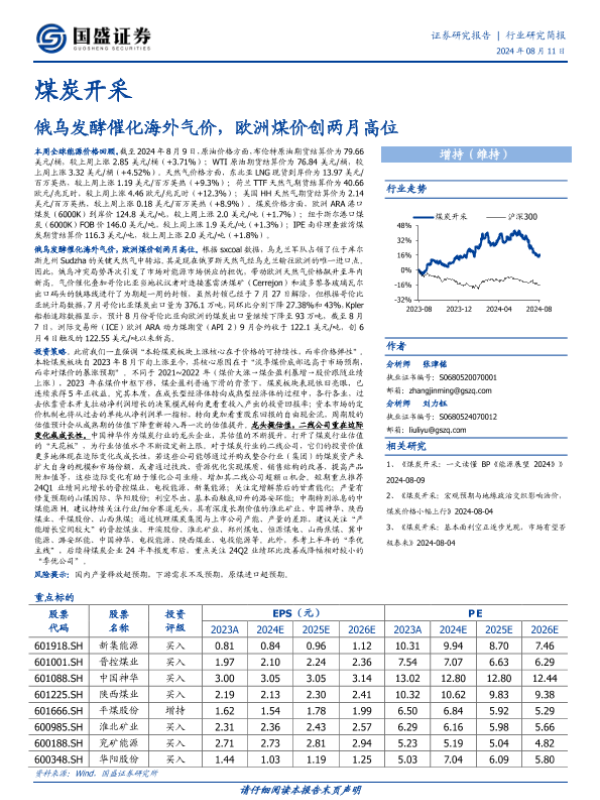 【国盛证券】【20240811】煤炭开采:俄乌发酵催化海外气价,欧洲煤价创两月高位-12页
