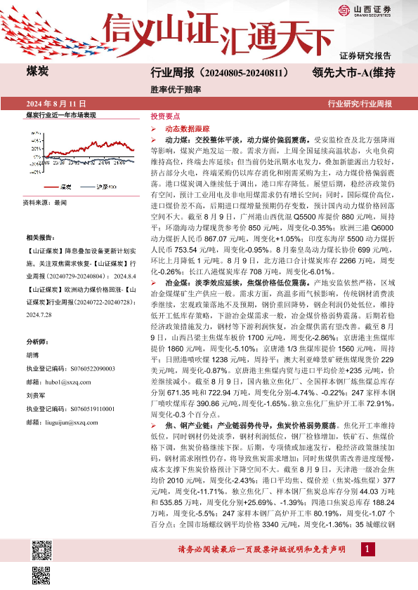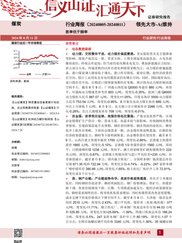 【山西证券】【20240811】煤炭行业周报:胜率优于赔率-19页