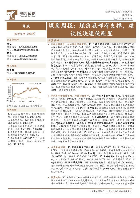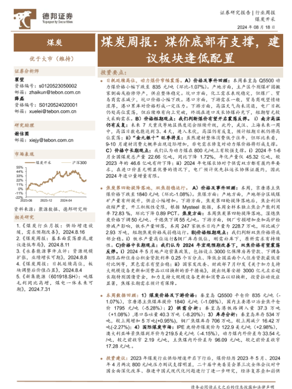 【德邦证券】【20240818】煤炭行业周报:煤价底部有支撑,建议板块逢低配置-17页