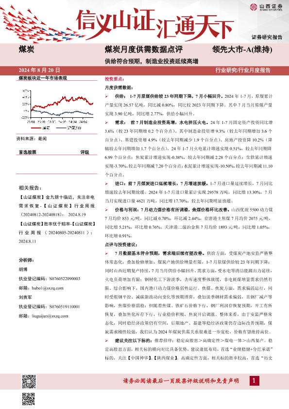 【山西证券】【20240820】煤炭月度供需数据点评:供给符合预期,制造业投资延续高增-10页