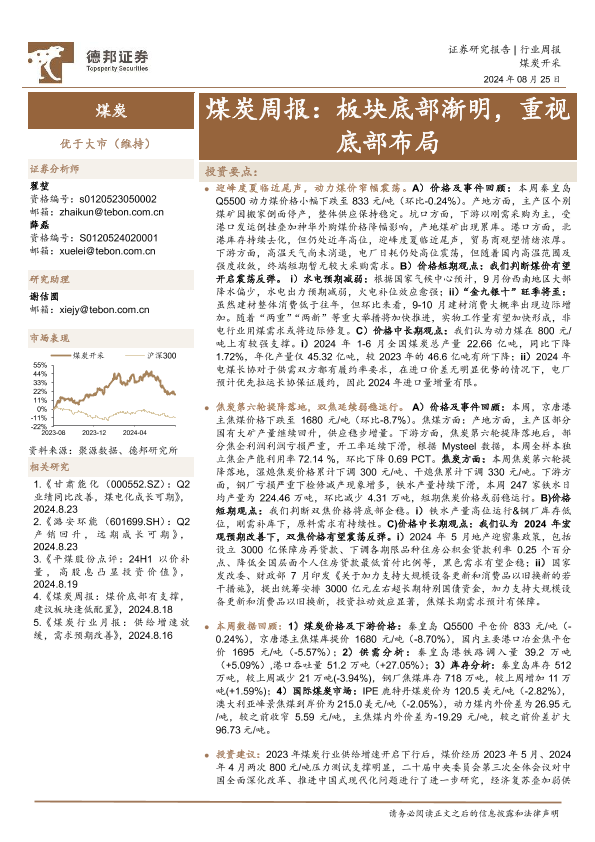 【德邦证券】【20240825】20240825-德邦证券-煤炭周报:板块底部渐明,重视底部布局-17页