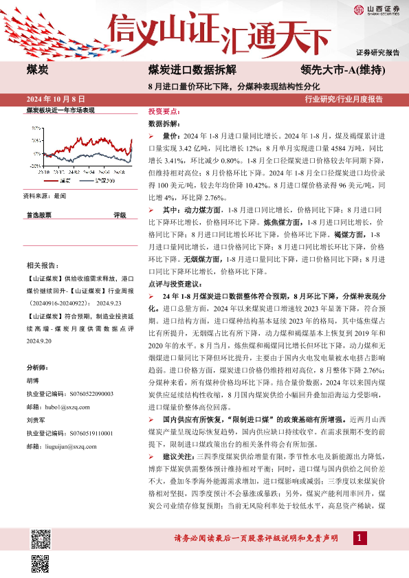 【山西证券】【20241008】煤炭进口数据拆解:8月进口量价环比下降,分煤种表现结构性分化-13页