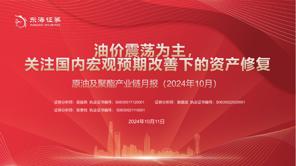 【东海证券】【20241011】2024年10月原油及聚酯产业链月报:油价震荡为主,关注国内宏观预期改善下的资产修复-30页