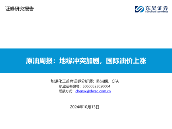 【东吴证券】【20241013】原油周报:地缘冲突加剧,国际油价上涨-56页