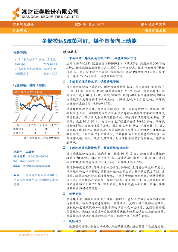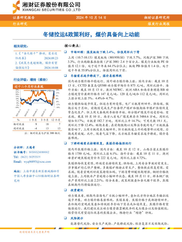 【湘财证券】【20241014】20241014-湘财证券-煤炭行业周报:冬储拉运&政策利好,煤价具备向上动能-14页