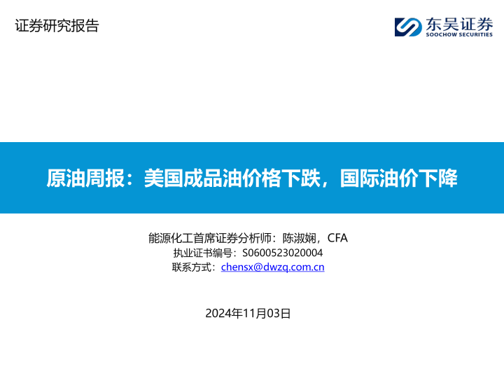 【东吴证券】【20241103】20241103-东吴证券-原油周报:美国成品油价格下跌,国际油价下降-56页