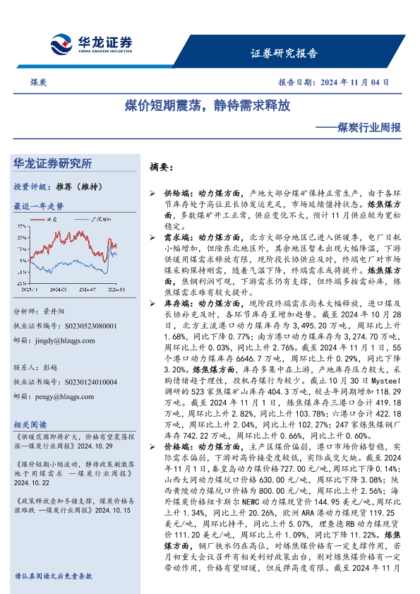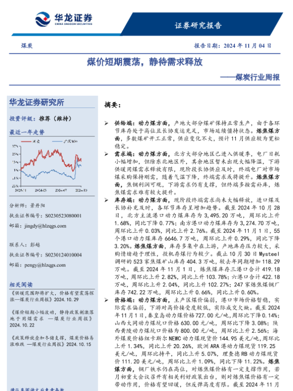 【华龙证券】【20241104】煤价短期震荡,静待需求释放-13页