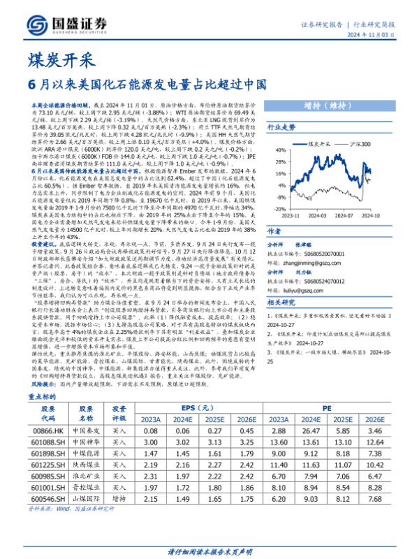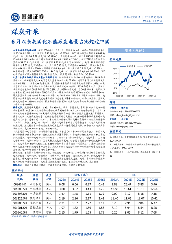 【国盛证券】【20241103】煤炭开采:6月以来美国化石能源发电量占比超过中国-11页