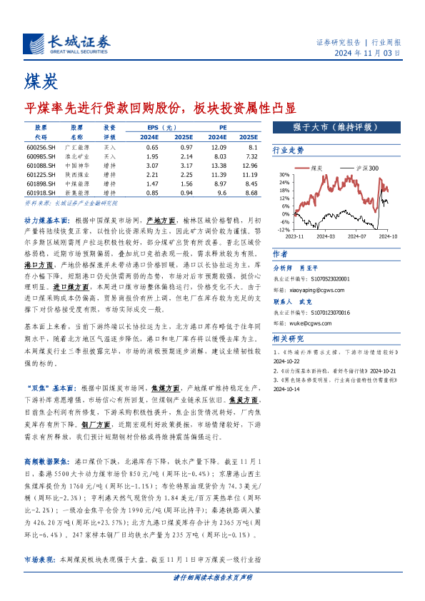 【长城证券】【20241103】煤炭行业周报:平煤率先进行贷款回购股份,板块投资属性凸显-20页