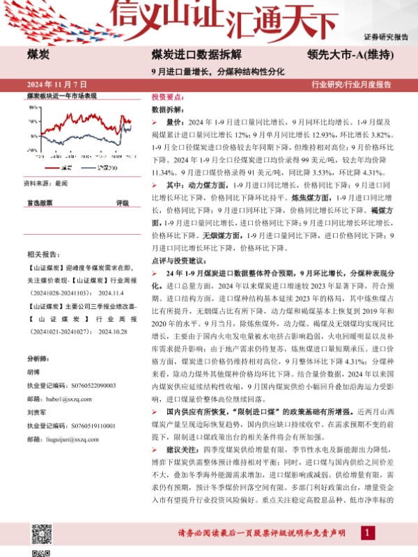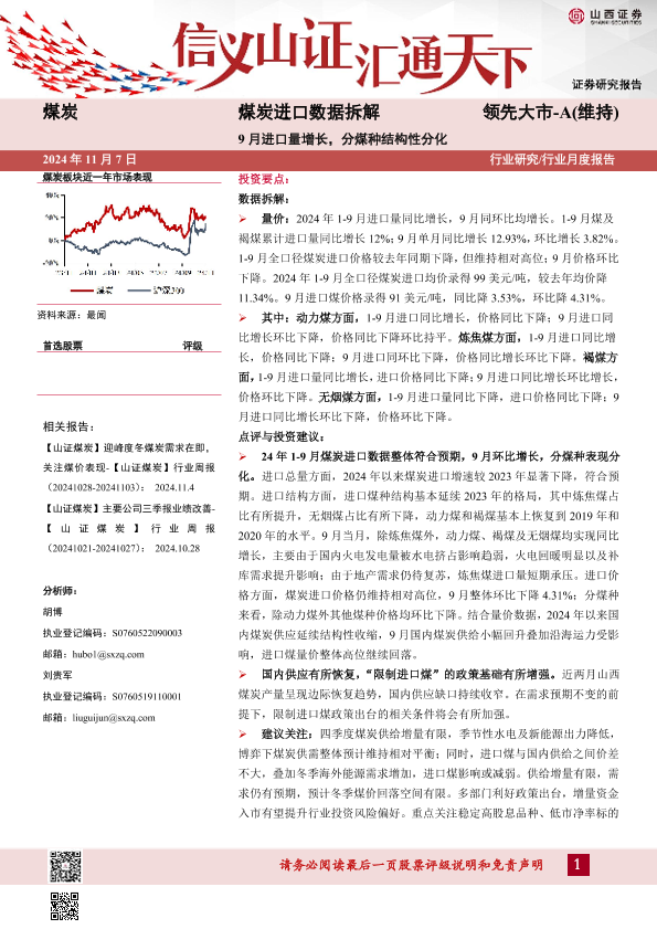【山西证券】【20241107】煤炭进口数据拆解:9月进口量增长,分煤种结构性分化-13页