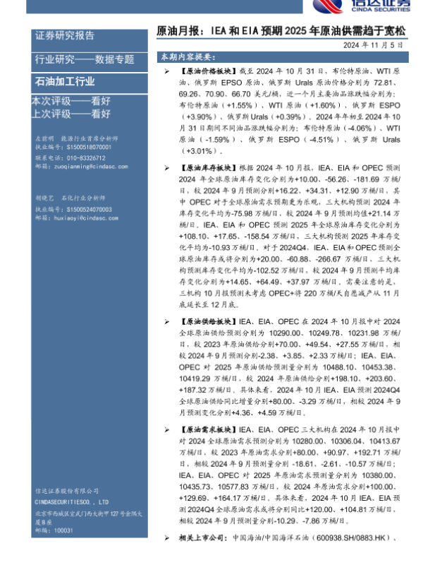 【信达证券】【20241105】原油月报:IEA和EIA预期2025年原油供需趋于宽松-26页