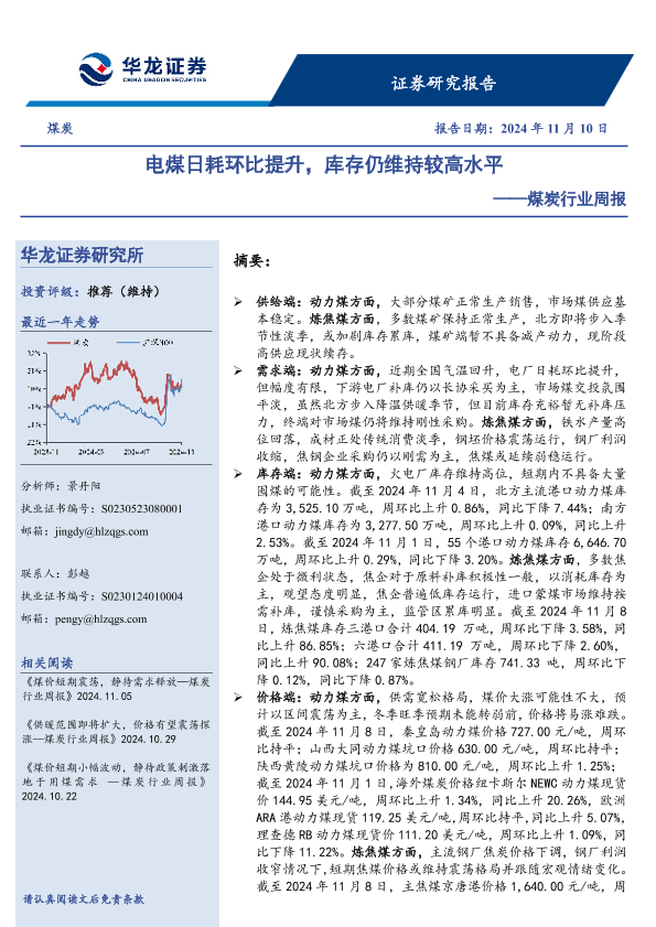 【华龙证券】【20241110】电煤日耗环比提升,库存仍维持较高水平-14页