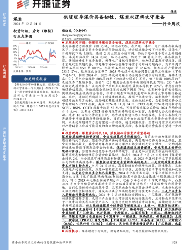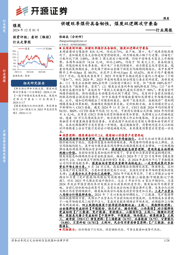 【开源证券】【20241201】供暖旺季煤价具备韧性,煤炭双逻辑攻守兼备-28页
