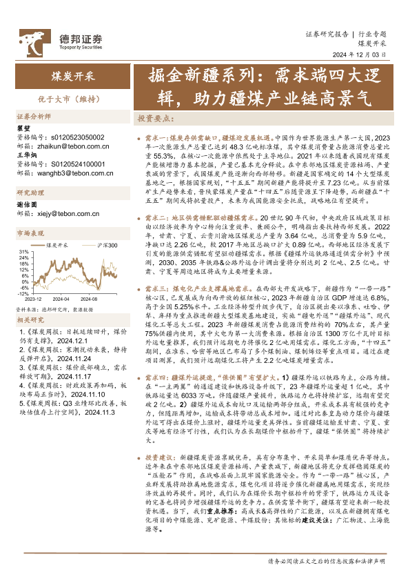 【德邦证券】【20241203】20241203-德邦证券-煤炭开采行业专题:掘金新疆系列:需求端四大逻辑,助力疆煤产业链高景气-26页