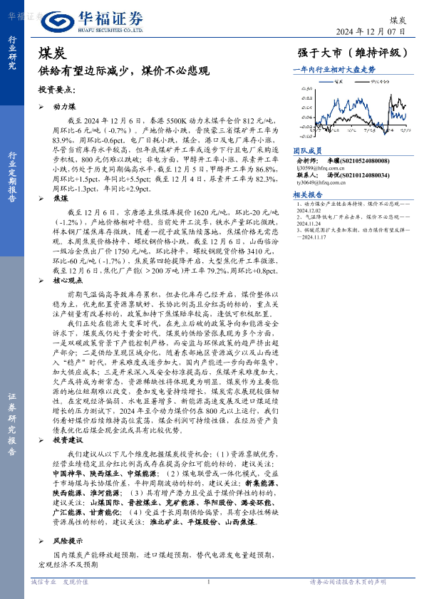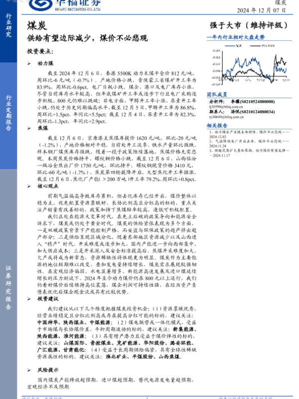 【华福证券】【20241207】20241207-华福证券-煤炭行业定期报告:供给有望边际减少,煤价不必悲观-20页