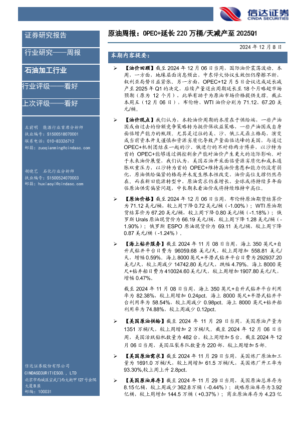 【信达证券】【20241208】原油周报:OPEC+延长220万桶/天减产至2025Q1-29页